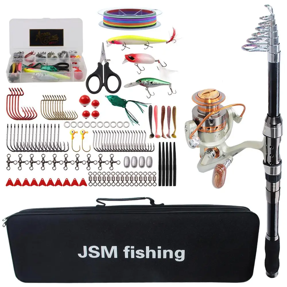 Promo Spinning Fishing Rod Combo tools Kit Spinning Telescopic Fishing Rod Reel Set with Line Lures Hooks